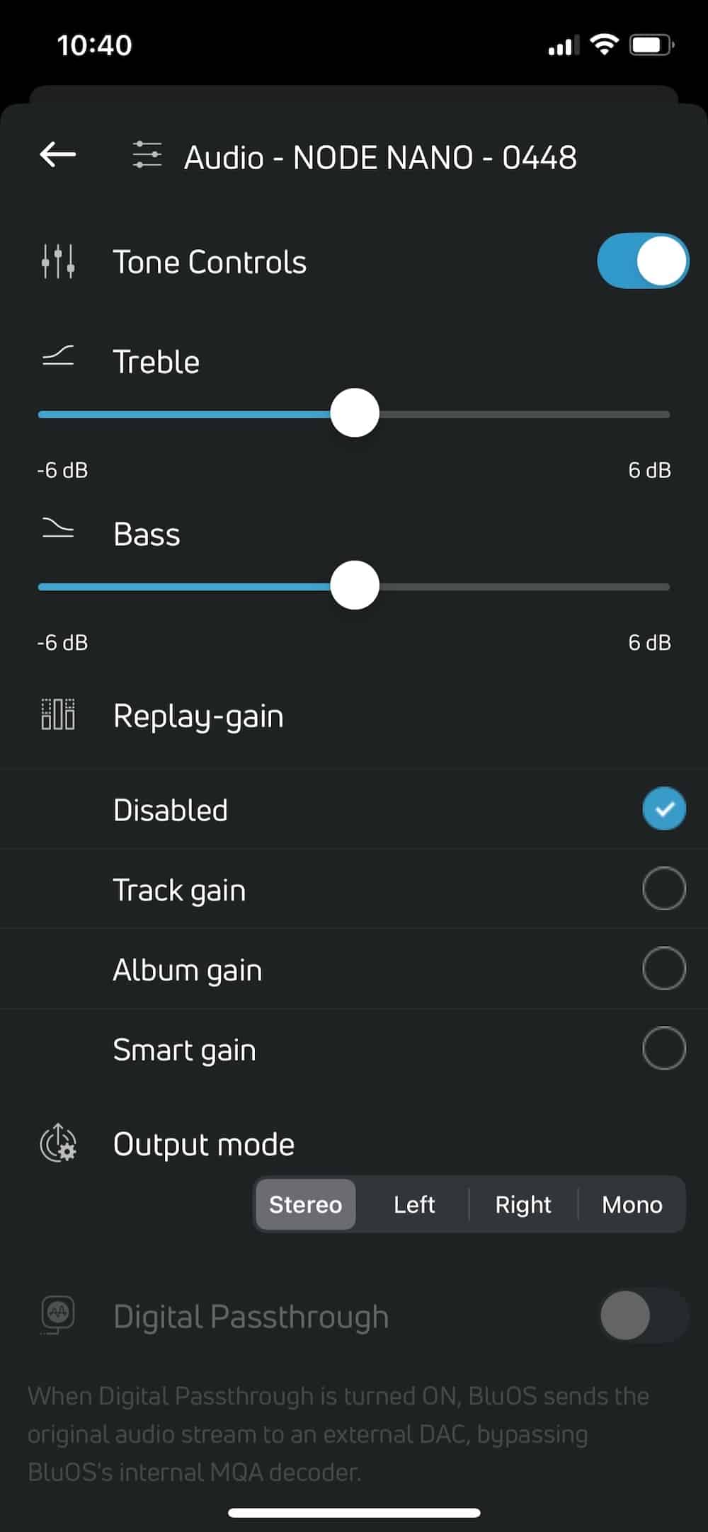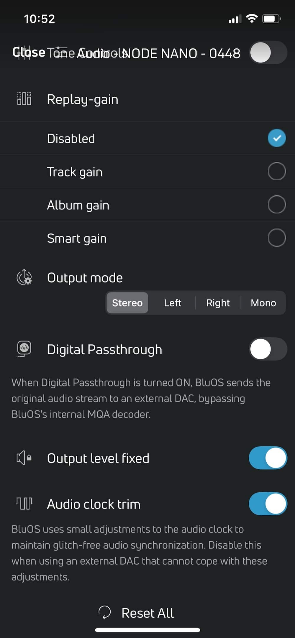 כפי שאתם רואים, כל ההגדרות כאן הן הגדרות שרוב המשתמשים יקבעו פעם אחת ולא יגעו בהן יותר. כך שיוצא שלאורך הבחינה שלי של ה-Node Nano, השתמשתי מעט מאוד באפליקציה עצמה. מכיוון שה-Nano הינו Roon Ready, את ההזרמה והניגון עשיתי רוב הזמן דרך Roon שזהו הממשק המועדף עלי.